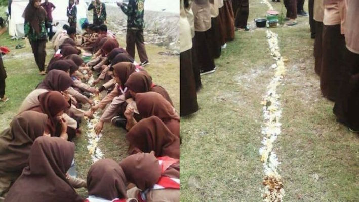 News, Viral Viral: Indonesian scouts forced to eat meal off the ground as punishment for tardiness Coconuts Jakarta | March 27, 2017
