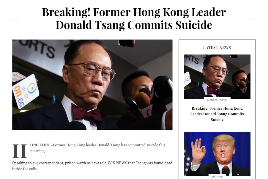 News, Weird Fake news site claims former C.E. Donald Tsang committed suicide in jail Coconuts Hong Kong | March 6, 2017