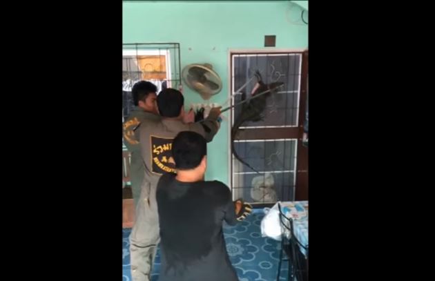 A-door-able monitor lizard clawed its way up townhouse door (VIDEO)