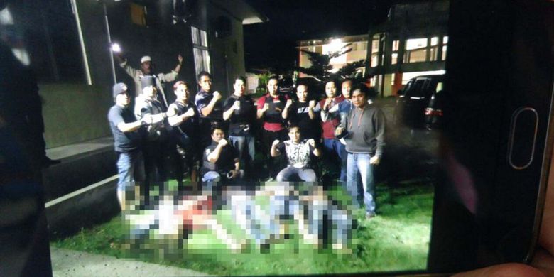 News, Crime, Viral Viral photo showing police posing over bodies of 5 criminals they just shot being investigated by internal affairs Coconuts Jakarta | April 3, 2017