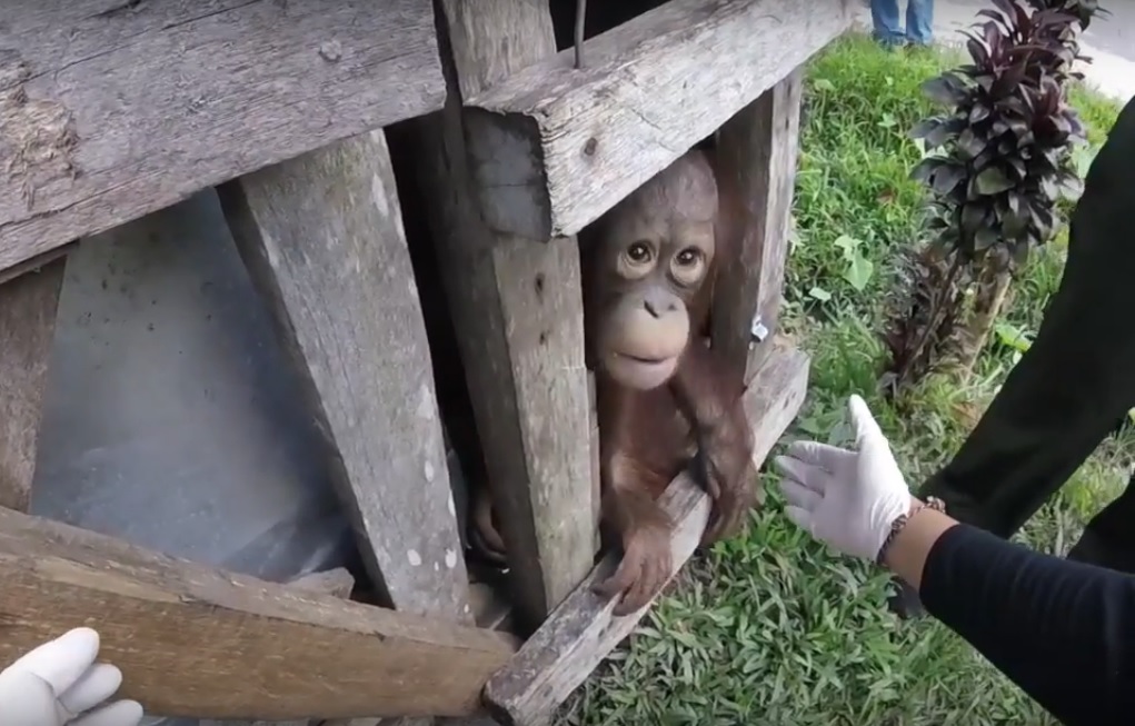News, Animals WATCH: Heartwarming moment baby orangutan peers out of small box he’s been kept inside for 2 years during rescue Coconuts Jakarta | May 5, 2017