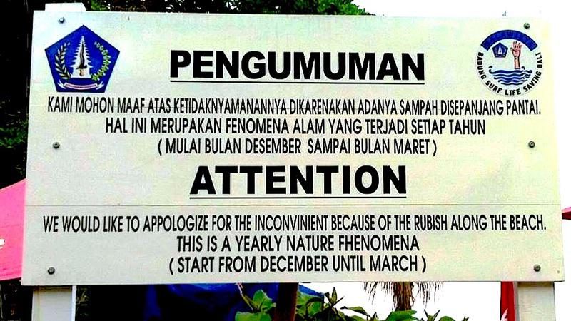 Despite these tidal waves of trash consisting mostly of plastic bags, Pop Mie containers and every other non-biological material out there, Bali governor Made Mangku Pastika last year insisted that the mountains of manmade waste was simply a “natural phenomenon,” with no one to blame for the ever-increasing masses of plastic finding their way beside tourists’ sunbeds.