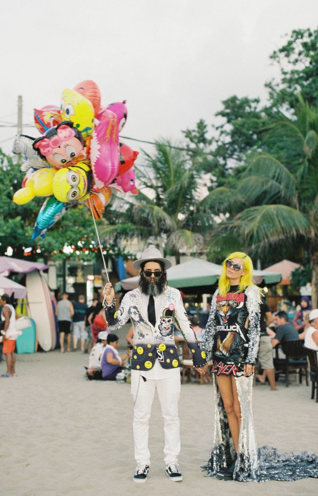 While most of their photos’ backgrounds are traditional Bali, the couple’s flair and 80s rocker swag is so hiply captured by photographer Janneke Storm.