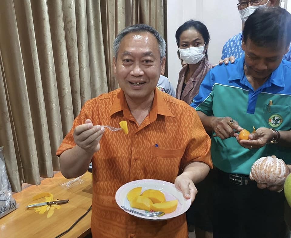 To ease fears that Prachinburi has a radioactivity problem, its top official posed for photos eating fruit.
