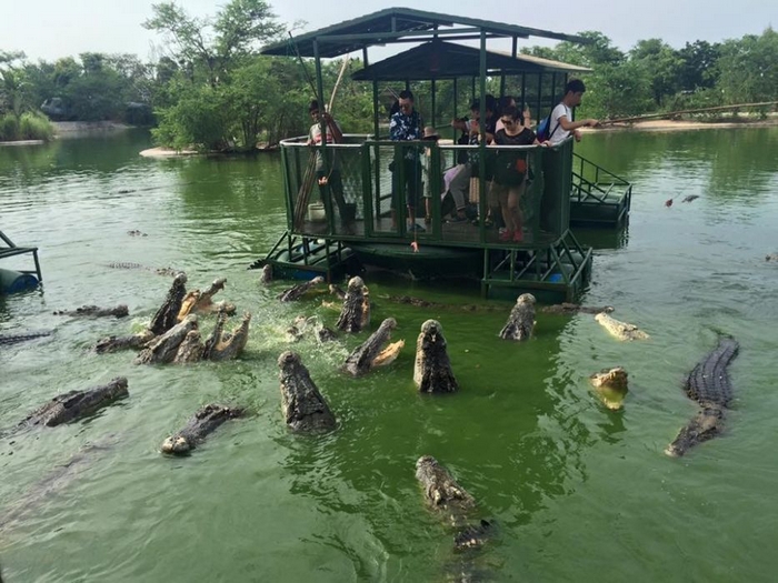 While farangs spent their holidays swimming in nasty flood water this year, Chinese tourists enjoyed floating above fifty hungry crocodiles and feeding them with tiny pieces of meat. Well, let’s hope none of the crocs pull too hard on their lines.