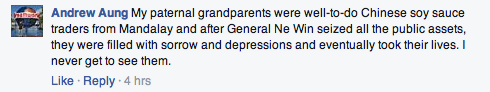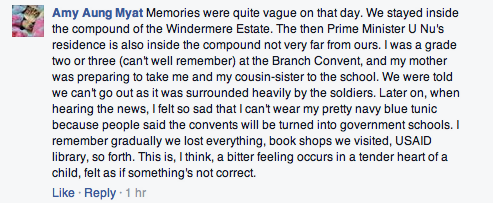 Thant Myint-U was describing history, not a direct personal experience; he was born four years later. But his post prompted others to leave personal (and inevitably heartbreaking) memories in the comments section.