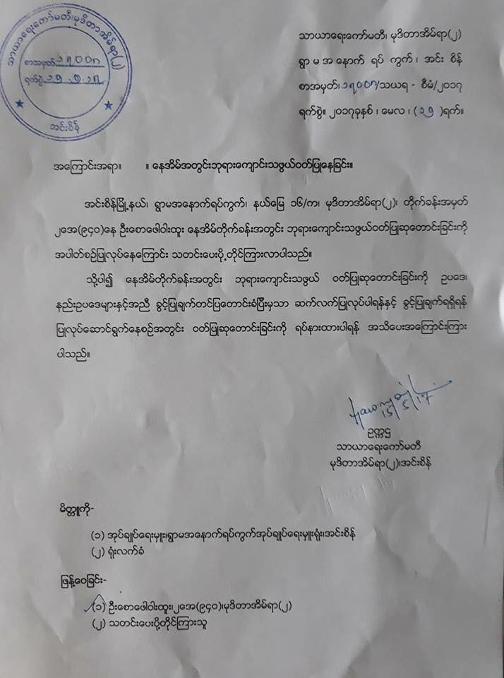 News, Politics, Religion, Viral Insein neighborhood committee issues notice ordering resident to halt prayer services Coconuts Yangon | May 17, 2017