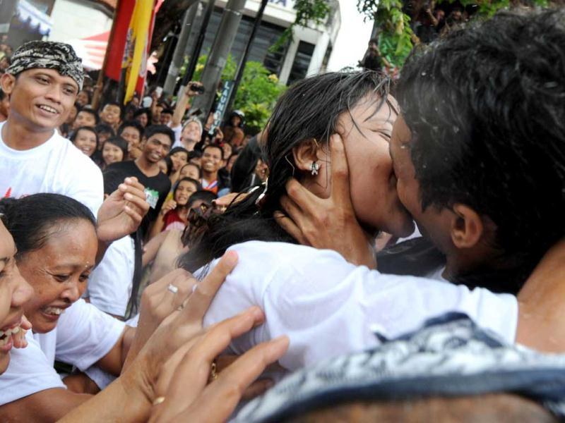 The kissing festival culminates with males pursuing females, some with shy pecks on the cheek or, for the bolder ones, a kiss on the lips. PHOTO: AFP/Sonny Tumbelaka
