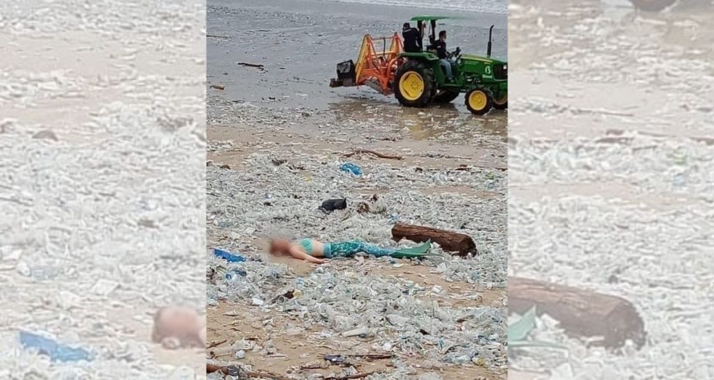 #1 Photo of mermaid on rubbish-filled Kuta beach welcomes Bali’s tidal trash wave this year
