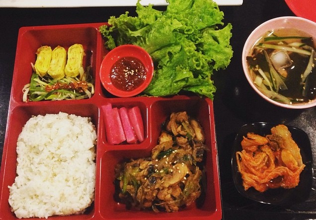 The couple is even helpful enough to give you a helping hand in mixing the Bibimbap properly—and proper here means thoroughly and vigorously mixed so that the sweet and spicy sauce coats the rice and veggies completely. Drool.