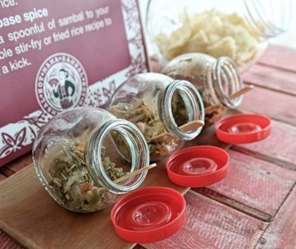 Being in Bali, of course the shop offers sambal matah: Balinese traditional sambal made of chopped shallots, lemongrass, chillies, and kaffir lime. Hot Mama’s version of the sambal is slightly stir-fried to preserve the sambal and perfect for grilled seafood and meaty dishes.