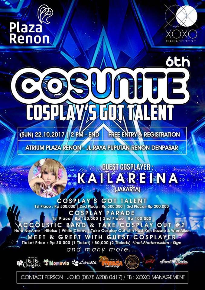 Cosplayers and the cosplay curious will be gathering in Renon on Sunday for Cosplay’s got talent. The event will include a “cosplay parade”, competition, and meet and greet with Jakarta guts cosplayed, Kailareina.