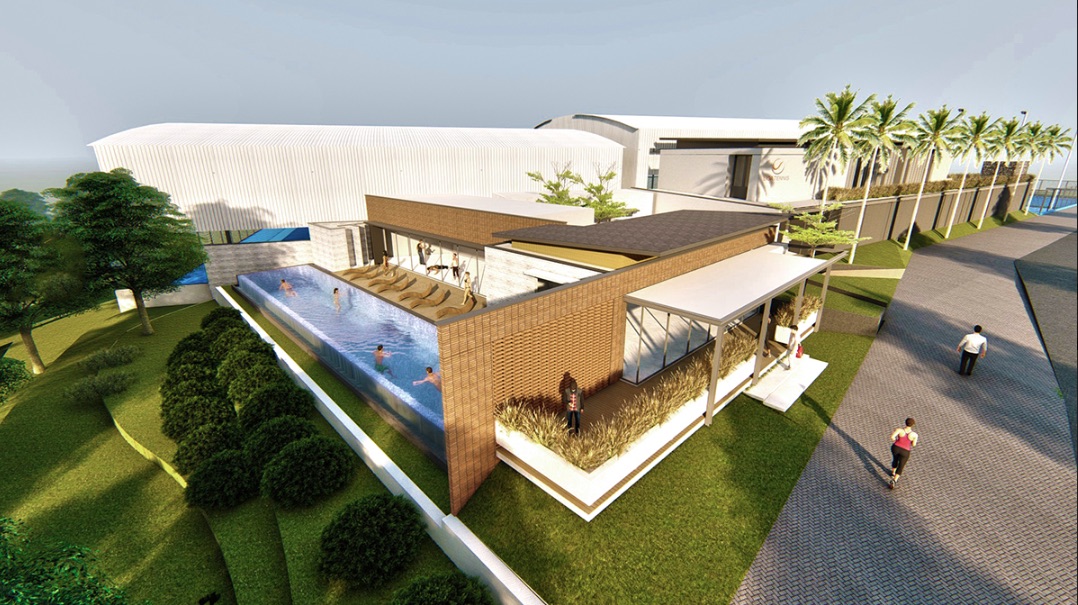 There will be four covered hard courts, all equipped with live-streaming facilities; two classrooms for “mental tennis” coaching; a café overlooking the court and grandstands (no full bar, but we’re told that they’ll sell Bintang); a tennis store with re-stringing machine; men’s and women’s locker rooms, and sports massage facilities. On a separate plot just meters away, there will also be a fitness center with an infinity pool overlooking newly manicured gardens.