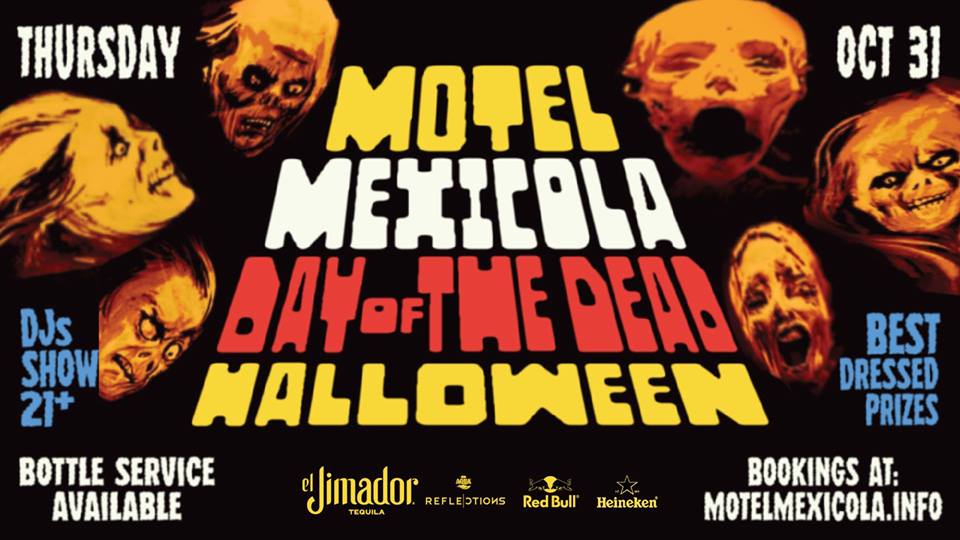 Thursday, Oct. 31 at Motel Mexicola. Dinner bookings from 6pm onwards, party slated until 3am. You can make your bookings here.