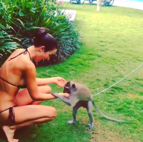 Laurina Fleure, who formerly appeared on the Australian version of the Bachelor posted a controversial video yesterday involving a Bali monkey that is definitely not G-rated.
