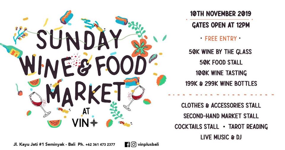 Sundays and wine, you say? Sign us up. The allure of this great combination is no secret, but then you throw in food and market to the mix, making it a little harder to resist. If you’re up for a casual day out this coming Sunday, the Market at VIN+ in Seminyak is a good place to be. Entry is free, and the price is pretty reasonable to enjoy some drinks and food during the occasion. They’re also promising clothes, accessories and second-hand goods stall for the event, as well as tarot reading and live music for entertainment.