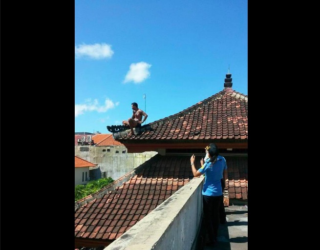 As of Tribun Bali’s latest report on the matter on Wednesday afternoon, the bule man was still on the roof of the Hotel Grand Inna Kuta.