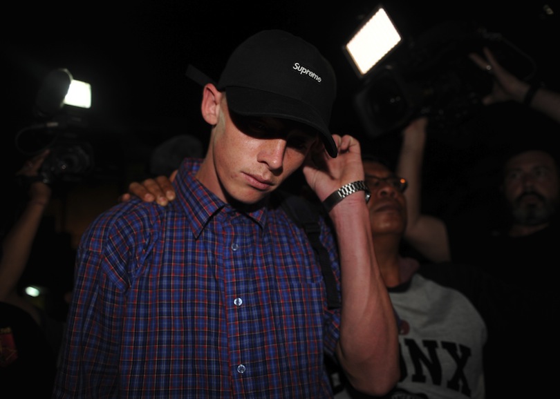 Footage of the arrest shows a guard gripping Murphy’s head and by the expression on the teen’s face, it looks downright painful.
