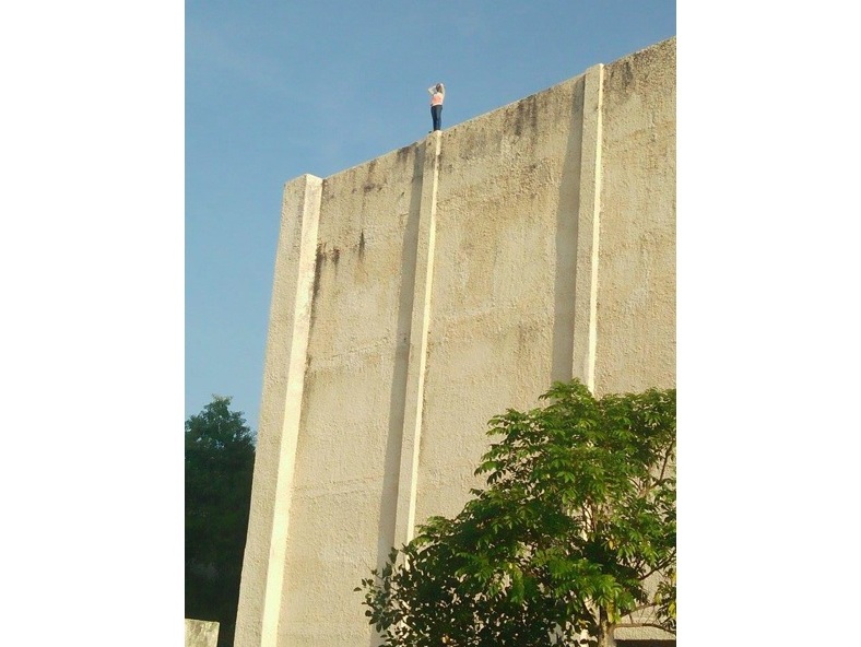 A chilling image of a woman, standing on the edge of a very tall building at Gardua Wisnu Kencana (GWK) Cultural Park in Jimbaran has been shared all over Bali social media since it was posted yesterday.