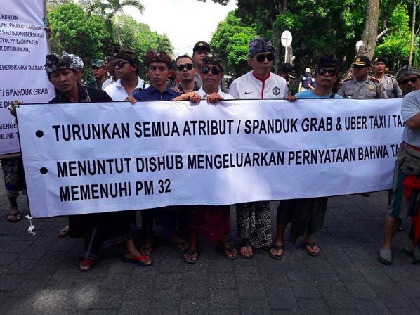 Protesters demanded a harsh crackdown of the apps operations in Bali, that they claim are offering dangerously low fares.
