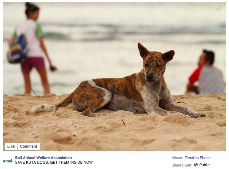 A recent Facebook post by Bali Animal Welfare Association (BAWA), one of Bali’s go-to organizations when it comes to Bali dogs, urges people to pull their dogs inside to save their lives: