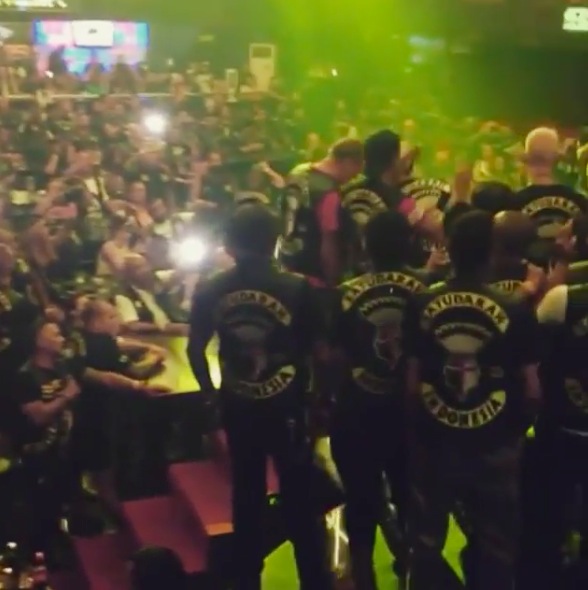 A video posted to Instagram and shared by local media shows the bikers singing on stage together at a nightclub—apparently before things got out of hand.