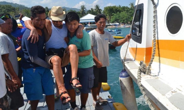 Indonesian rescuers carry an injured passenger off a ferry in Senggigi in Lombok island on Saturday. Photograph: Faiz Abdillah/AFP/Getty Images