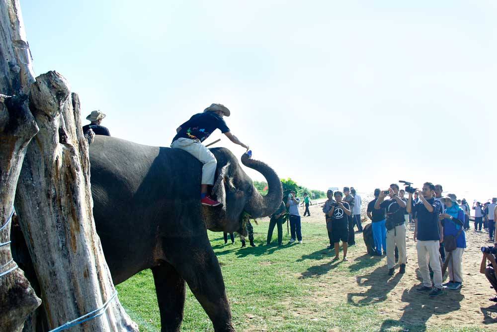The ‘different’ idea of putting the elephants to work to clean up humans’ trash was apparently to inspire local residents to pitch in and help cleaning up themselves.