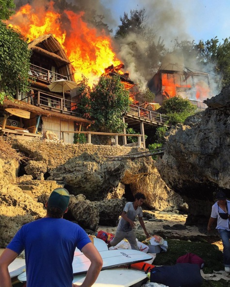 White Monkey Surf Shop also posted a picture of the fire going through Padang Padang/Impossibles.