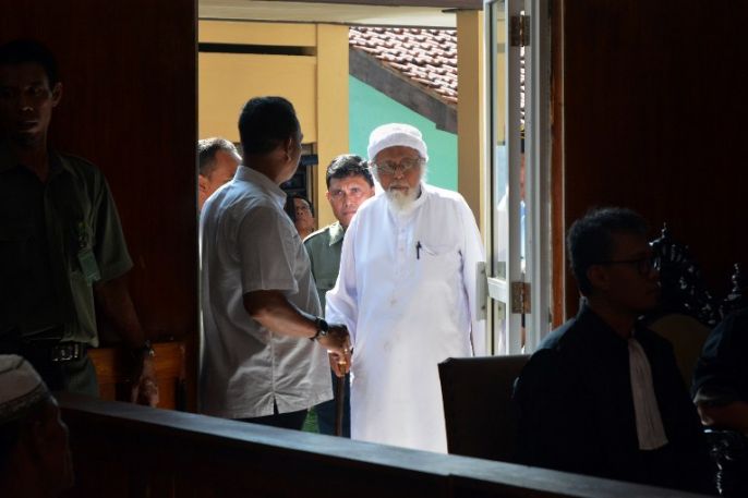 The elderly, bespectacled preacher was sentenced to 15 years in jail in 2011 for helping fund a paramilitary group training in the staunchly Islamic province of Aceh, which allegedly planned to kill the then president as well as Westerners.