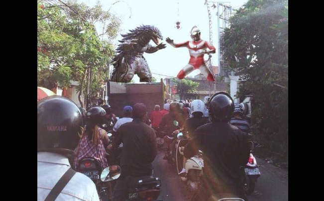 Making light of this god-awful macet (traffic), some netizen apparently saw an opportunity to add in a bit of humor and photoshop in the “cause” of the chock-a-block.