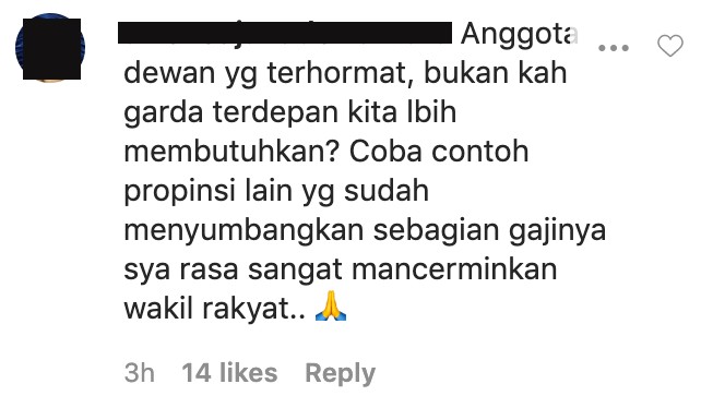 “Wah… members of DPRD are considered [at] high-risk? I wonder if my friends who are working in clinics, Puskesmas [Community Health Clinic] and hospitals who are exposed to patients have undergone rapid tests?”