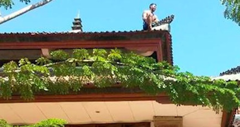 The shirtless bule had been pacing on the edge of the rooftop at the Grand Inna Kuta, apparently talking to himself.