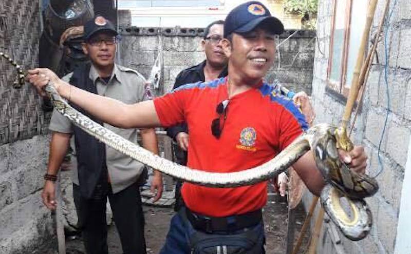 Denpasar Regional Disaster Management Agency (BPBD) put their snake-catching skills to good use on Wednesday morning.