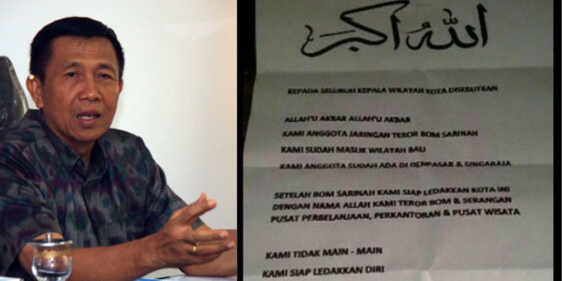 Pastika further explained that even though there was no actual bomb, the letter was an act of terrorism since the purpose was to make people worry and afraid.