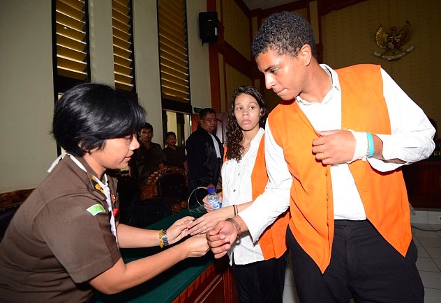 Heather Mack and Tommy Schaefer, accused of murdering Sheila von Wiese-Mack, were pictured in handcuffs as they arrived for their latest court appearance in Bali today. PHOTO: AFP/Getty Images
