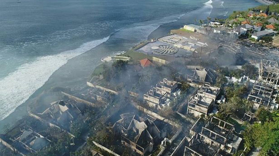 A fire that shot up billowing columns of black smoke and reportedly destroyed 14 villas in Bali’s Uluwatu on Monday was caused by welding sparks, according to the local fire department.