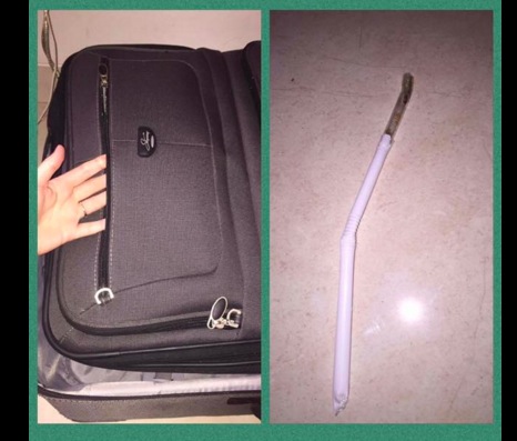 A pic collage of a suitcase and then a pipe, apparently used to “smoke ice in Bali” were posted on March 21 by Facebook user Demi Black, who explained in the image’s caption that her sister found the item in her bag as she was going back home.