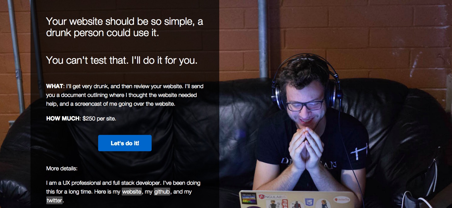 One of the core tenets of UX is that you’ve got to design like “the user is drunk.” Any feature of your site has to be able to be used by someone who could be drunk – because, invariably, the user will mess it up otherwise. Wonderful idea. The thing is, it is hard to test.