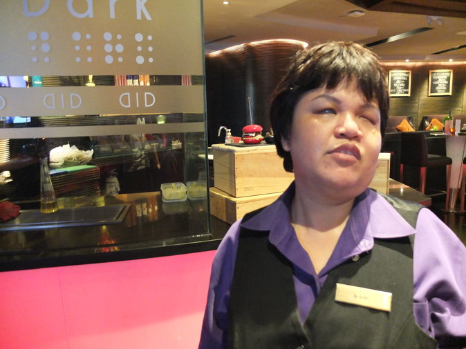 It’s not a scene out of a Bangkok nightclub but sounds commonly heard at Dine in the Dark, a restaurant where guests eat in complete darkness, assisted by visually-impaired people who act as guides, doing everything from physically leading diners to their seats to handing them their utensils.