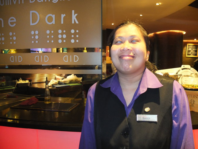 The guides are key to the dark dining experience that, for some, can be unnerving. When dining in complete blackness, even the simple act of navigating to the bathroom becomes an arduous task.
