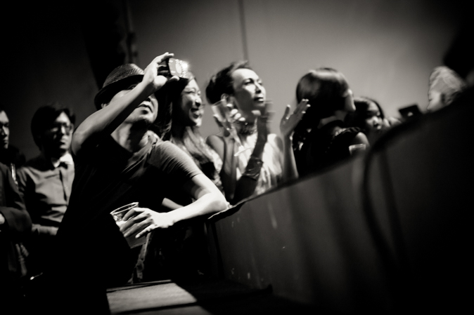 At the red carpet entryway, un-invited neighborhood locals crowded the gates to observe the strange hi-so human wildlife.
