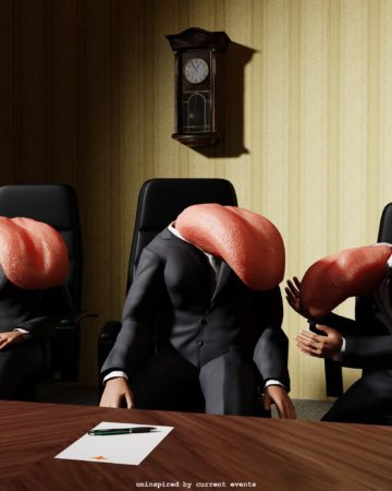 As Uninspired by Current Events, he is making a mark with of-the-moment works satirizing Thailand’s worst days of the pandemic, from a lab rat being injected with random vaccines to panda-masked riot police opening fire. One of his impactful works was just posted earlier this week depicting a shrouded corpse lying in a street and surrounded by orange traffic cones and abandoned flags – a timely parallel to the ghastly sight this week of dead bodies in Bangkok’s streets.