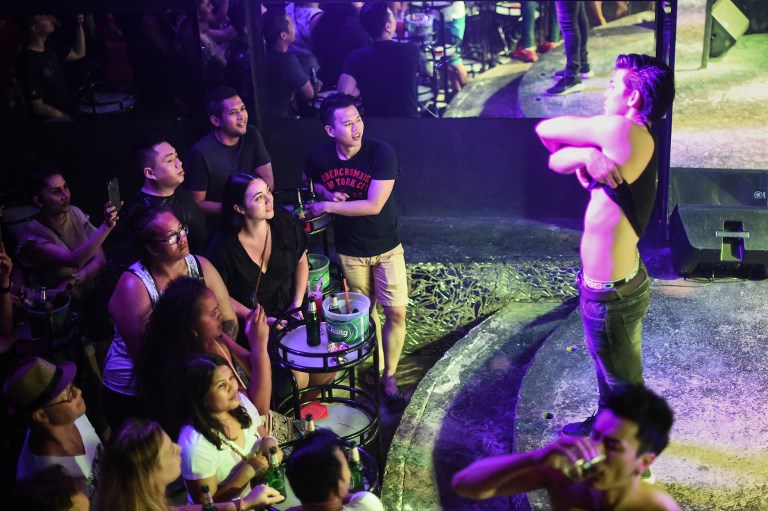 “We’re waiting for the go-go boys!” says one Chinese reveller at ZAG, one of several clubs squeezed into “Paradise Complex” — the epicentre of the raucous gay nightlife scene on the party-hard island.