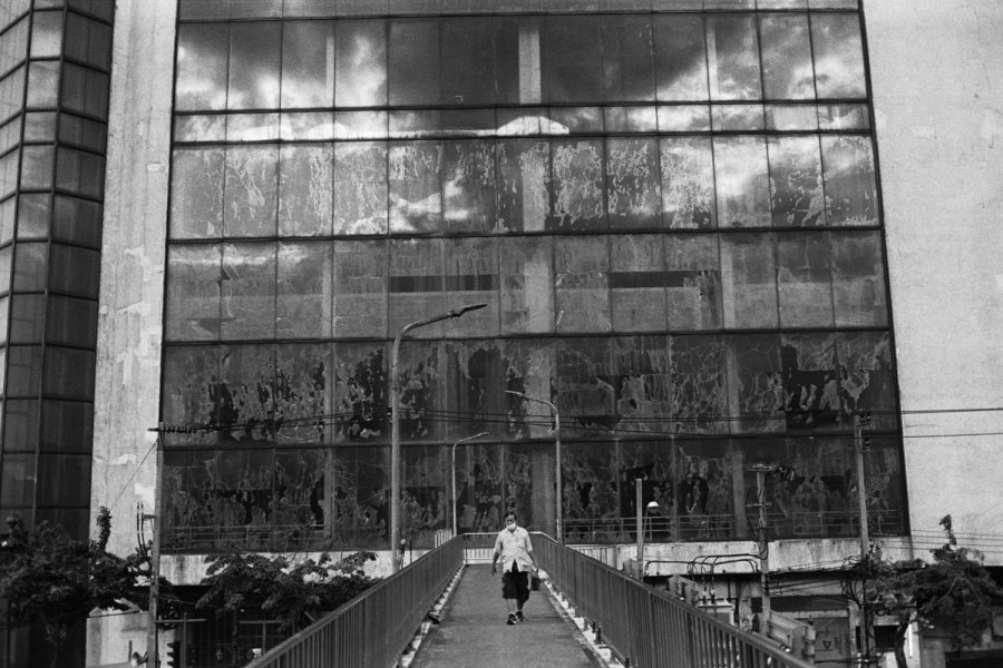 “Supposedly it was one of the first large malls in Bangkok. When I first moved here, only the first floor was open and they sold deadstock goods from the ‘80s. The reflective film on the windows is falling off, and every day at sundown they create these interesting patterns,” he said.