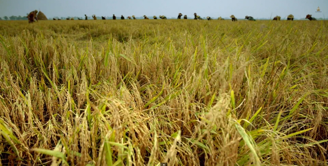 The movie contrasts that with Bang Kapi’s earthy “Rice Harvesting Song,” a flirtatious, call-and-response folk song adapted to create a romantic dance for Kwan and Riam. Instead of the rice field, the singing takes place at the village’s temple allowing more participants to join in the scene.