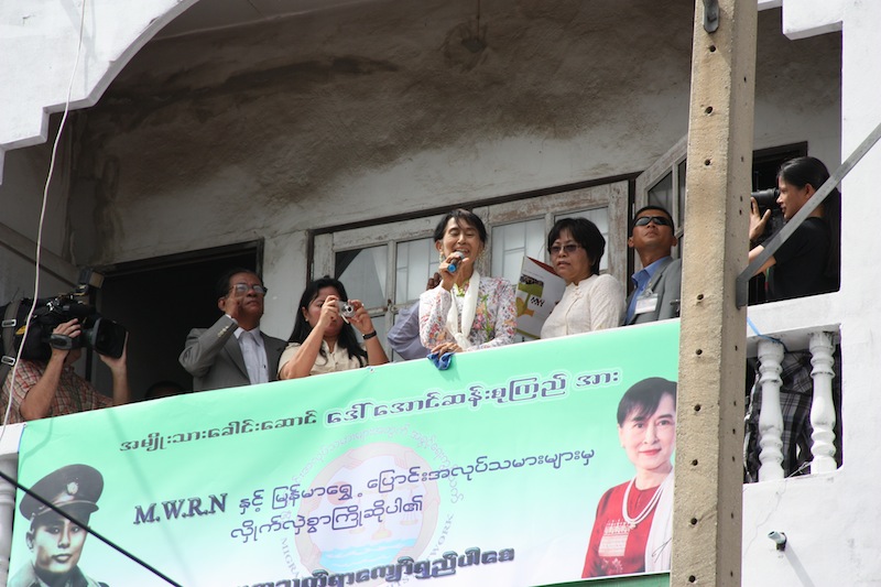The attentiveness and enthusiasm of those gathered outside left no doubt that support for the 62-year-old democracy activist-cum-prisoner-cum-opposition leader is strong in these parts.