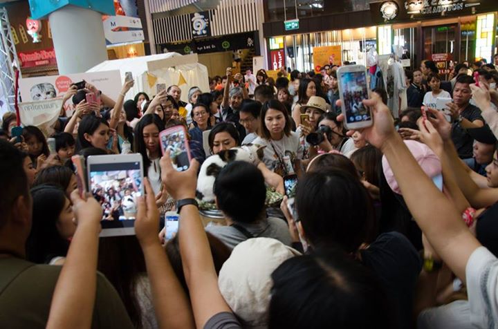 Crowds swarm an internet celebrity cat a party to celebrate Kingdom of Tigers’ 2 million Facebook likes on June 20 at Gateway Ekamai. Photo: Kingdom of Tigers