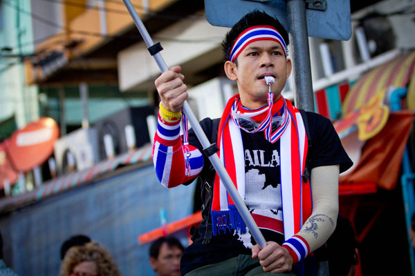 Protesters began gathering Sunday night at sites throughout the capital targeted for today’s “Bangkok Shutdown.”