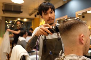 It’s not just foreigners that want “classic cuts.” “It’s about 50-50 here,” said Okui, a well-known barber with a chair at Three Brothers. “We are mainly busy on the weekends when Chatuchak Market is open,” he said of the shop, which is located in the Chatuchak MRT station.